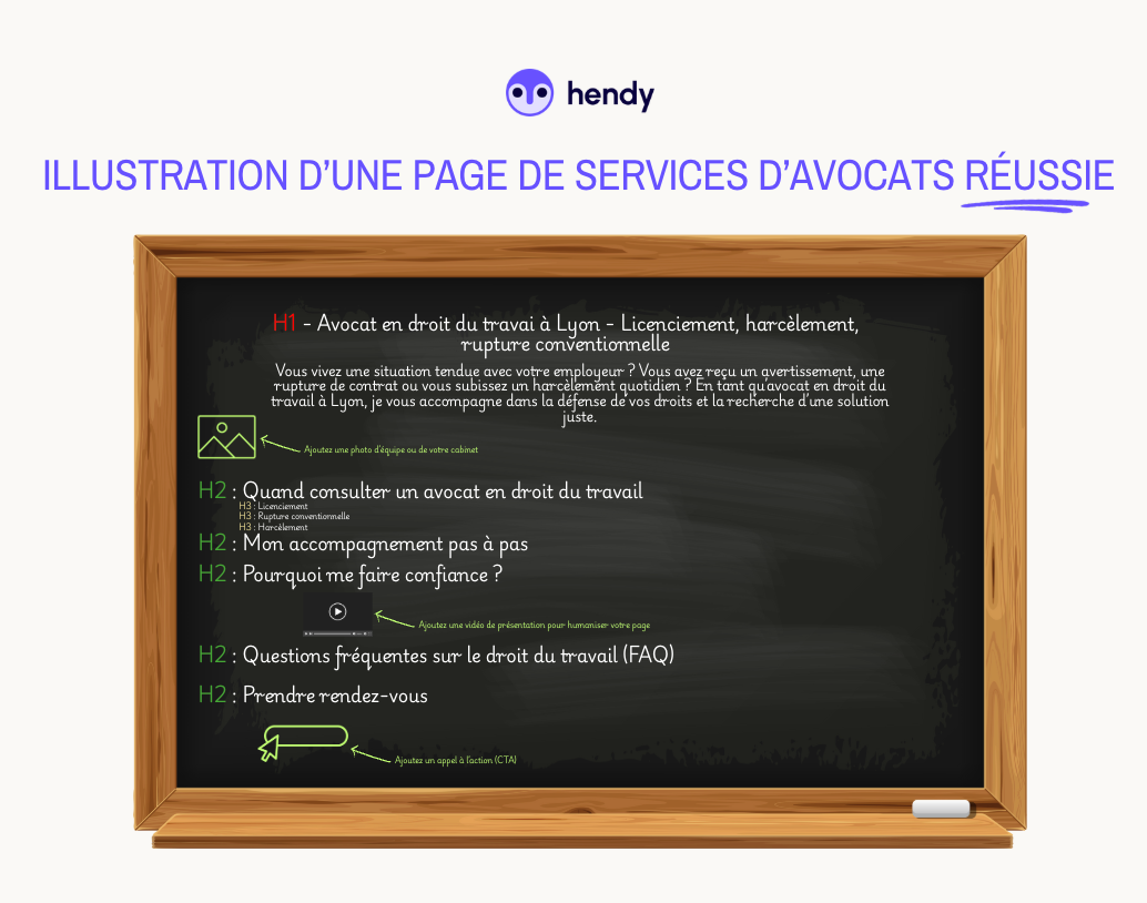 Dès qu’on reprend un site d’avocat chez Hendy, c’est la même chose : soit les pages de services sont absentes, soit elles sont trop vagues, mal ciblées, ou écrites uniquement pour Google.